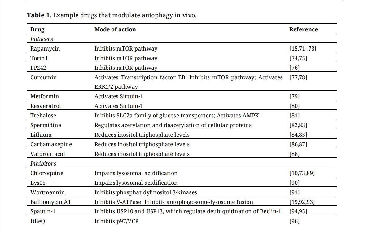 Table 1. Example drugs that modulate autophagy in vivo.