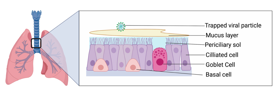 The lung is exposed to a myriad of substances with every breath we take. To protect itself from pollutants, dust, particulate matter, allergens, viruses, bacteria, and fungi that exist in the air around us, the lung has evolved a highly tuned innate immune system. One of the first lines of defense against inhaled matter is mucociliary clearance, which is performed by the airway epithelium of the trachea and the central conducting airways (Figure 1).