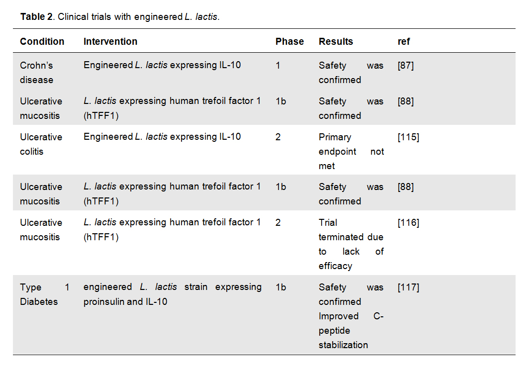Human gut commensal bacteria have evolved to occupy their niches by modulating the host immune responses; that is, bacteria can exert either anti-inflammatory or proinflammatory pathways to achieve a symbiotic relationship with their host. Therefore, when we use bacteria “as is”, their beneficial contribution could be masked by their propensity to engage a balanced ‘not too hot and not too cold’ Goldilocks scenario. This was first shown in vitro using Lactobacillus plantarum, using knock-out mutants to identify specific gene loci that modulate the immune response of dendritic cells [102], and then elegantly demonstrated in vivo by Lightfoot et al. where only after removing the Lactobacillus (L.) acidophilus proinflammatory signals, the therapeutic effects L. acidophilus strain became evident [103]. In this latter study, deletion of the immune activating cues surface layer protein (Slp) B, SlpX, and LTX, enabled enrichment of the anti-inflammatory signal mediated by SlpA to predominate, effectively improving the therapeutic activity of L. acidophilus to enable the synthetically engineered strain of L. acidophilus to treat inflammatory bowel disease in murine animal models [103].