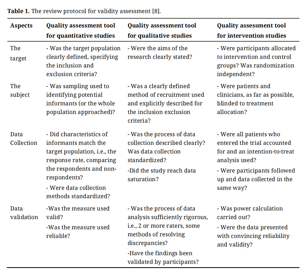 Table 1. The review protocol for validity assessment [8].