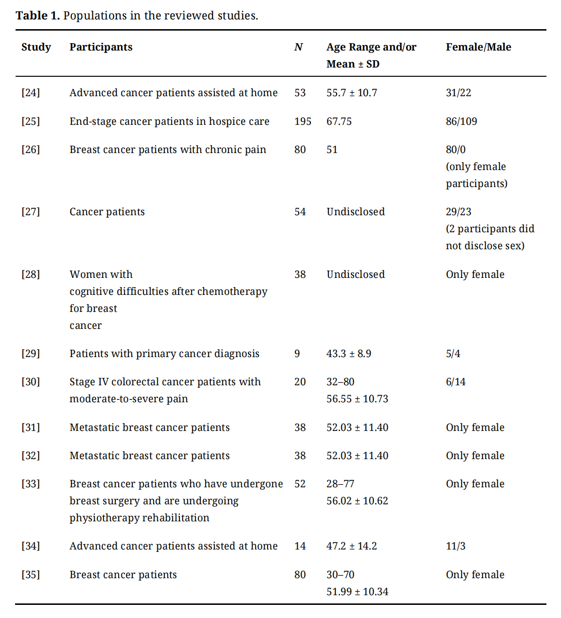 Table 1. Populations in the reviewed studies.