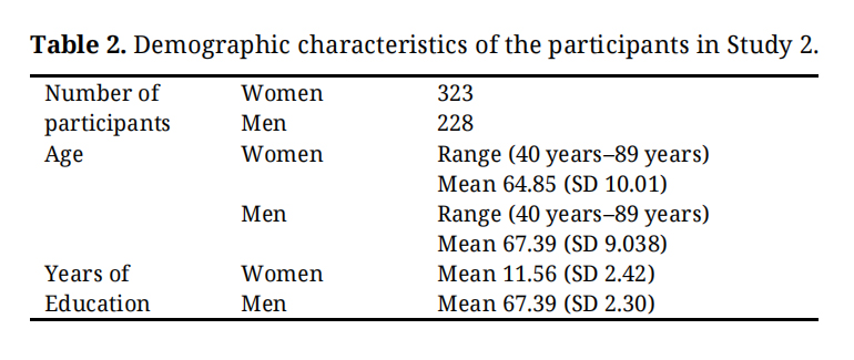 Table 2. Demographic characteristics of the participants in Study 2.