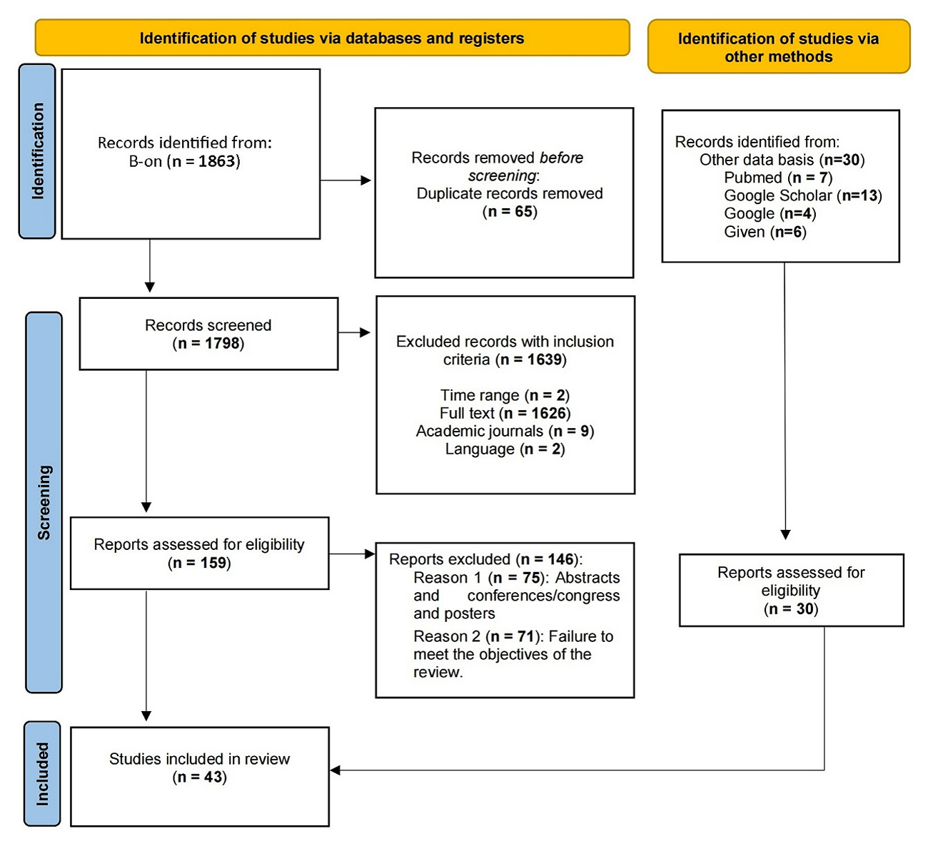As a result, 13 studies met the inclusion criteria and were analyzed. As it is a relatively recent topic, the total number of studies found through the research protocol and effectively submitted for analysis for this review was insufficient. Thus, 30 articles were added to this review to complement the intended information and objectives.