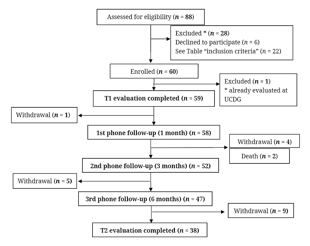 We recruited 60 participants who consecutively visited the Fall Prevention Clinic, from September 2018 to March 2019. Only 1 participant was excluded because he had already been evaluated in a similar program.