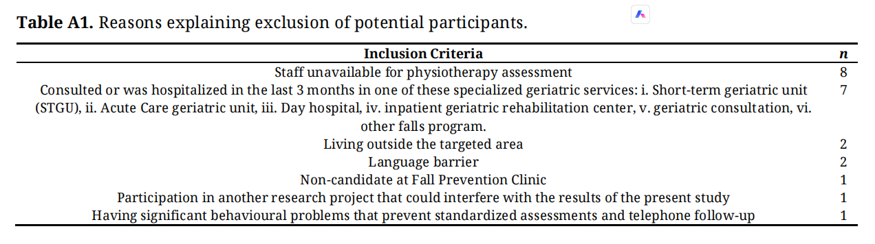 Brazeau S, Corriveau H, Lapierre J, Ricard G, Pagé C, Breton É. An interdisciplinary outpatient clinic designed to reduce falls in community-living seniors: A pragmatic pilot study. Adv Geriatr Med Res. 2025;7(4):e250022. https://doi.org/10.20900/agmr20250022.
