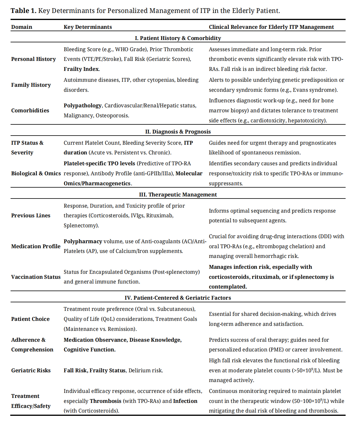Table 1. Key Determinants for Personalized Management of ITP in the Elderly Patient.