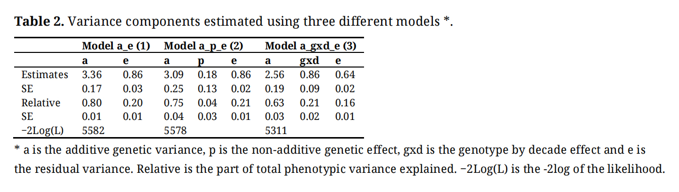 Table 2. Variance components estimated using three different models *.