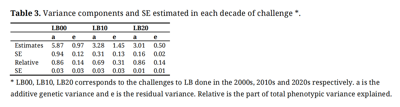 Table 3. Variance components and SE estimated in each decade of challenge *.