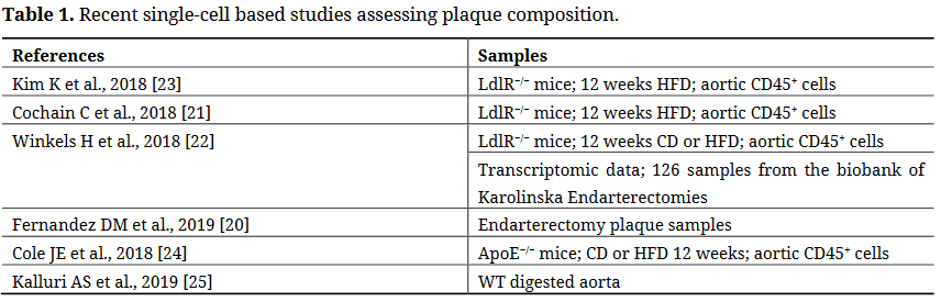 Table 1. Recent single-cell based studies assessing plaque composition.