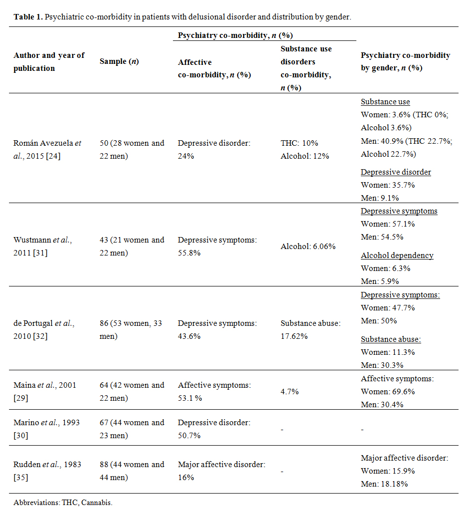 Table 1. Psychiatric co-morbidity in patients with delusional disorder and distribution by gender.
