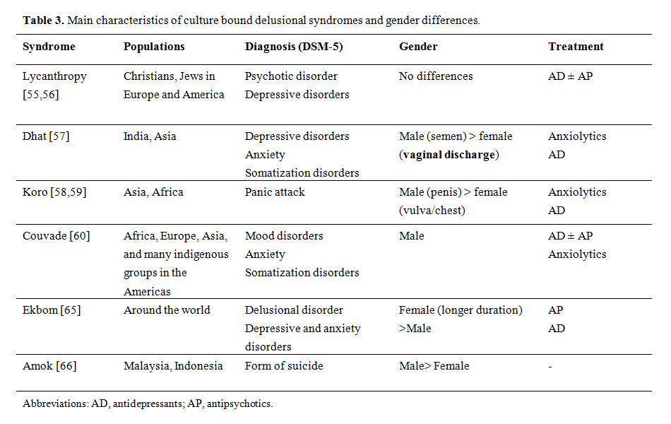 Table 3. Main characteristics of culture bound delusional syndromes and gender differences.