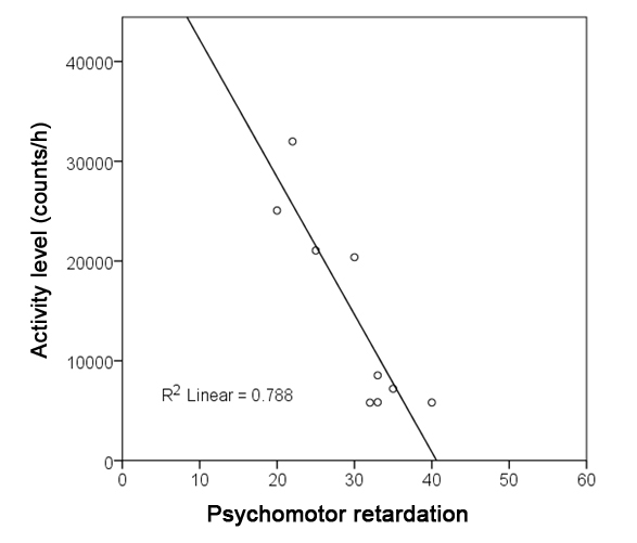 Ecologically Valid Measures of Motor Disturbance Actigraphy assessmentWrist actigraphs (Philips Respironics, USA) are placed on the nondominant arm for continuous recording of motor activity for 1 week (at 30 s intervals). Actigraphy uses accelerometers to collect movement counts per interval. Data will be processed in Dr. Walther’s lab, focusing on activity levels (i.e., average activity counts per hour during wake periods of the day). Subjects also complete a sleep log to indicate wake periods and for cross-validation [56]. Time series analysis will be used to test for temporal stability of the movement patterns [75]. Specifically, the time series of logged activity data will be subject to a partial autocorrelation function (PACF) on defined actigraphy data periods of several hours when most subjects are awake (e.g., from 9:00 AM to 12:00 AM). The PACF focuses on the time series of movement counts in chronological order and indicates the number of lags with significant autocorrelation (with the correlation in the opposite direction partialled out). In time series with low numbers of significant lags (e.g., 2), the movement count in lag 1 is only associated with movement in lag 2. Higher numbers of significant lags are interpreted as more stable movement patterns. The PACF derived number of lags is covaried for the total amount of movement. PmR will be defined as the amount of total activity level, and PmA will be defined as unstable movement patterns (i.e., low number of significant lags). As an exploratory measure, actigraphy data will also be used to analyze circadian variation of motor activity [80].