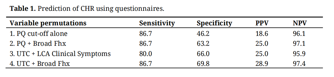 Improving Prediction of CHR for Psychosis Using Questionnaires