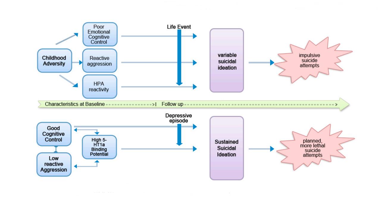 1. We posit two paths to suicidal behaviors through variable suicidal ideation and sustained suicidal ideation. Importantly, if confirmed, this may affect a paradigm shift leading to delineation of multiple subtypes of suicidal behavior, each with a unique set of neurobiological, neurocognitive and environmental attributes.