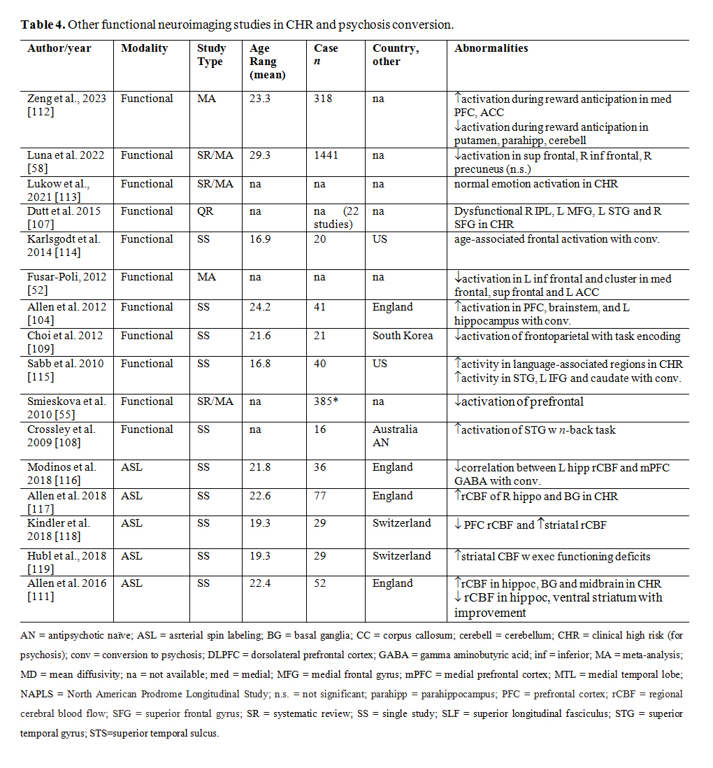 Table 4. Other functional neuroimaging studies in CHR and psychosis conversion.