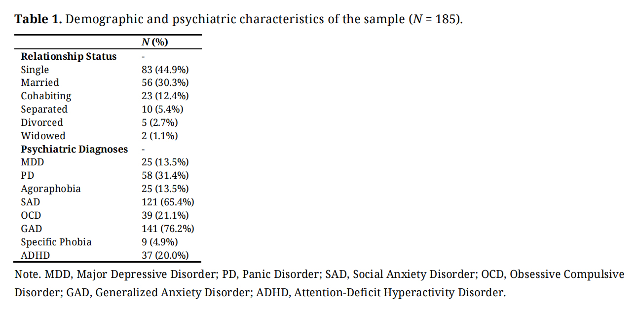 Table 1. Demographic and psychiatric characteristics of the sample (N = 185).