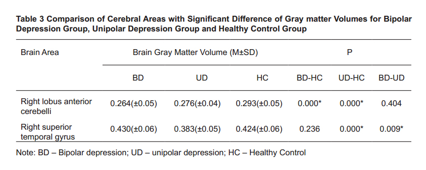 Hu A, Xue Z, Liu Z, Wang P, He Z. Unipolar Depression and Bipolar Depression Manifest Different Brain Abnormalities: A Voxel-based Morphometry Study. J Psychiatry Brain Sci. 2016;1(2):4; https://doi.org/10.20900/jpbs.20160009