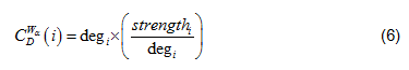 In Eq. (5), when 0 < a < 1, both high degree and strong ties are favorably measured, whereas, for values of a greater than 1, lower degrees and stronger ties are favorably measured[17]. In this study, we set a = 0.5, such that the node degree and node strength were equally evaluated.