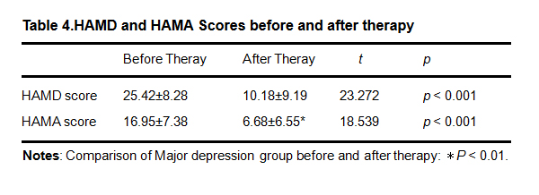 Table 4.HAMD and HAMA Scores before and after therapy