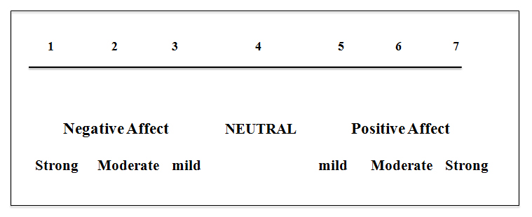 Fig. 1 Positive and negative affect were initially rated separately, on a scale of 1 (mild) to 3 (strong) for each, with the positive or negative sign denoting the valence. The coding ratings were subsequently placed on a singular scale to facilitate comparisons across questions. As can be seen, 1 was strongly negative, 4 was neutral, and 7 was strongly positive.