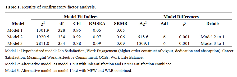 Overall, the hypothesized measurement model was the best fit for the data (both samples) and this was confirmed by testing several alternative CFA models and these were all significantly poorer fit (all p < 0.001) to the data [42].