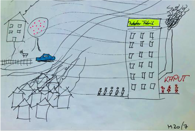 This led to 73 recorded explanations, or to be precise, stories, about the content, aim, meaning, etc., of the drawings and how they relate to potential transitions as well as corresponding implications for the private and public sector. Above all, this research inspired pupils’ confidence of conveyed interest in their awareness and future visions.