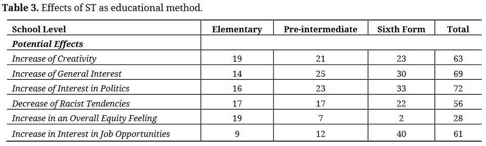 Table 3. Effects of ST as educational method.