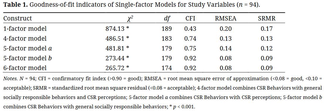 LimitationsOur findings should be considered against the study’s limitations. A key limitation of this study is that the data were self-reported and collected simultaneously, which can introduce several forms of common method bias (CMB). That being said, we felt self-report strategies were appropriate in this case [83]. That is, many of the key constructs in this study were perceptual (i.e., felt responsibility for constructive change, CSR perceptions, etc.) and therefore unlikely to be known by others (cf. [84]). In using self-report measures for participant prosocial behaviors (i.e., CSRBs and GSRBs), we adopted arguments made by others [79,85,86], who have reasoned that using self-report measure for certain prosocial behaviors may be preferable over third-party observations when the focal research question pertains to respondent motivations and intentions behind the target behaviors. Nonetheless, future research might consider using objective reports, such as hours volunteered or dollars donated, as a balance to self-reported behaviors. Further, as suggested by Spector [87], we took a number of steps to reduce the risk of CMB contaminating our results. For example, we separated measures on the survey addressing similar constructs from one another (e.g., proactive personality and felt responsibility for constructive change), and followed the recommendations of Chung and Monroe [88] in instructing participants that no personal information would be shared with the university or their supervisor. Respondents were also not personally identified on any research materials.