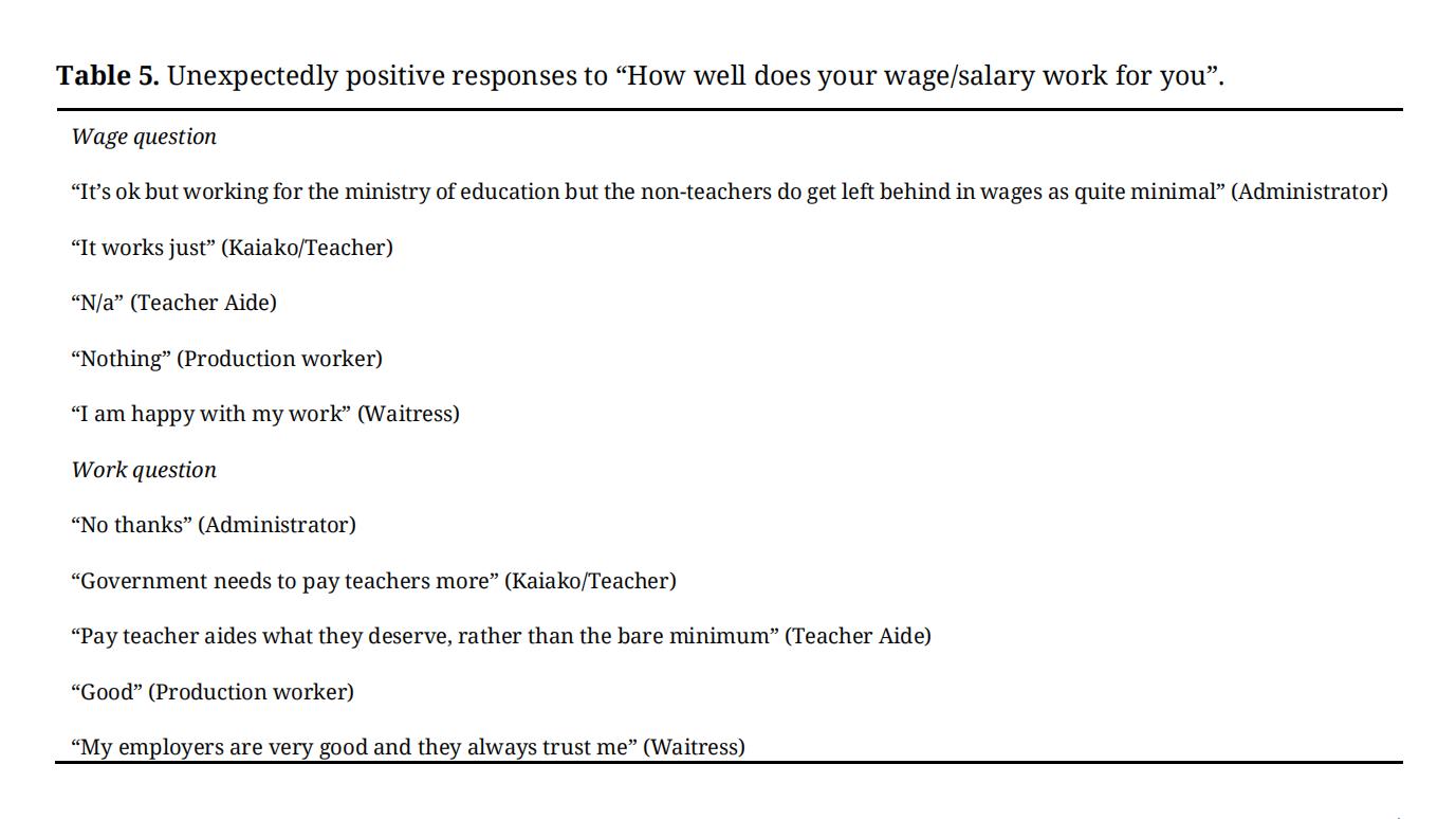 Table 5. Unexpectedly positive responses to “How well does your wage/salary work for you”.