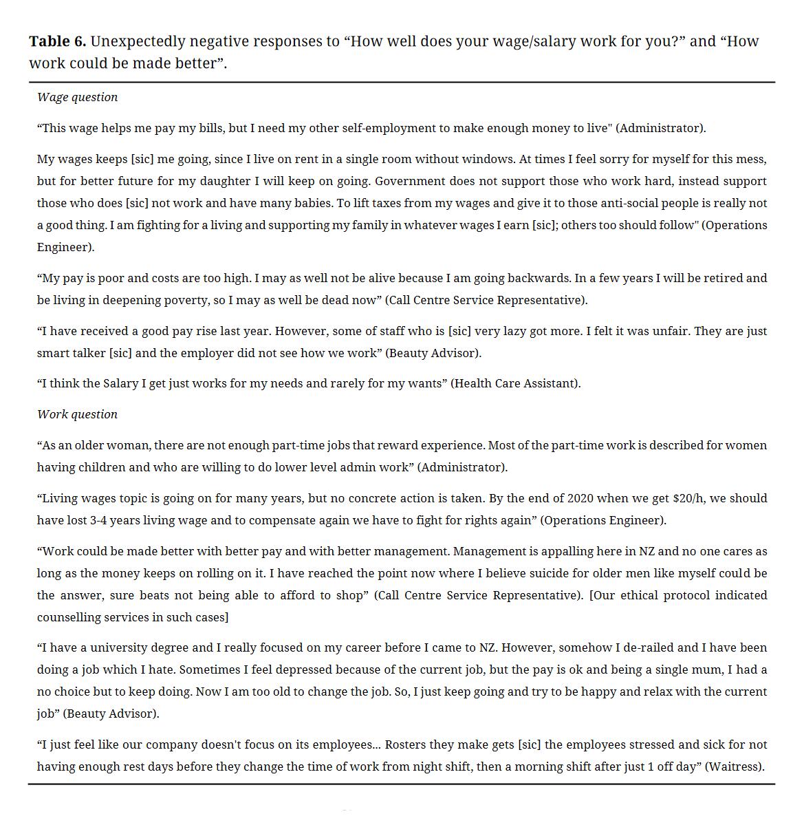 Table 6. Unexpectedly negative responses to “How well does your wage/salary work for you?” and “How work could be made better”.