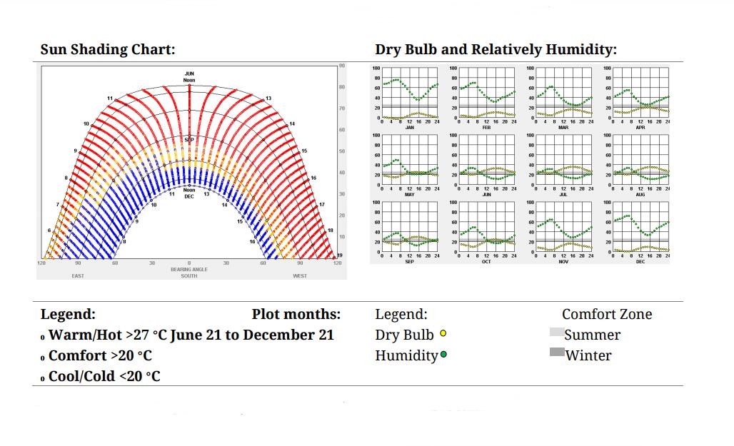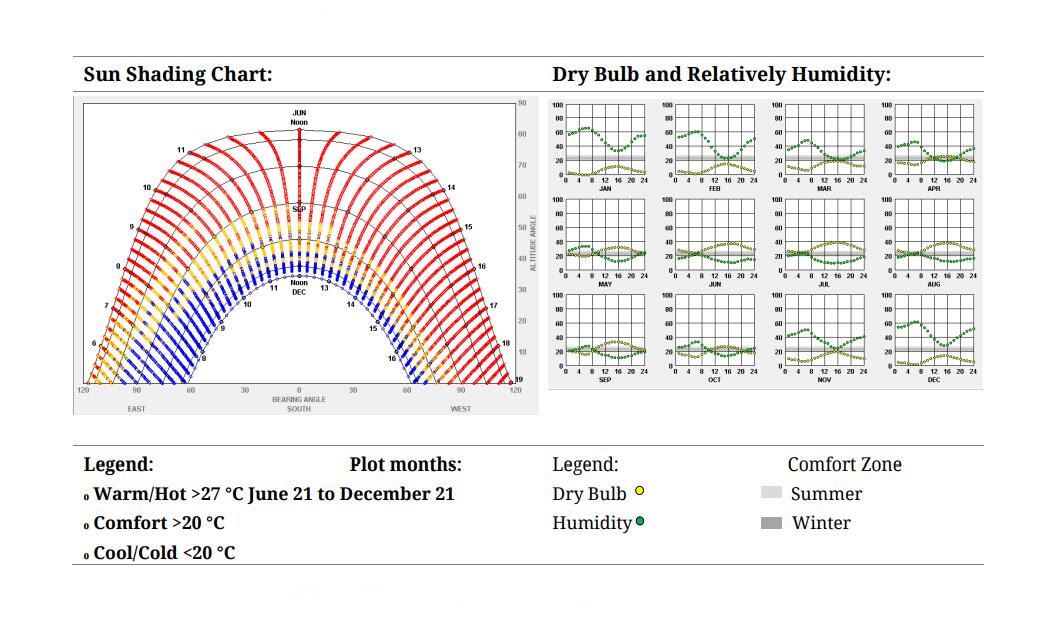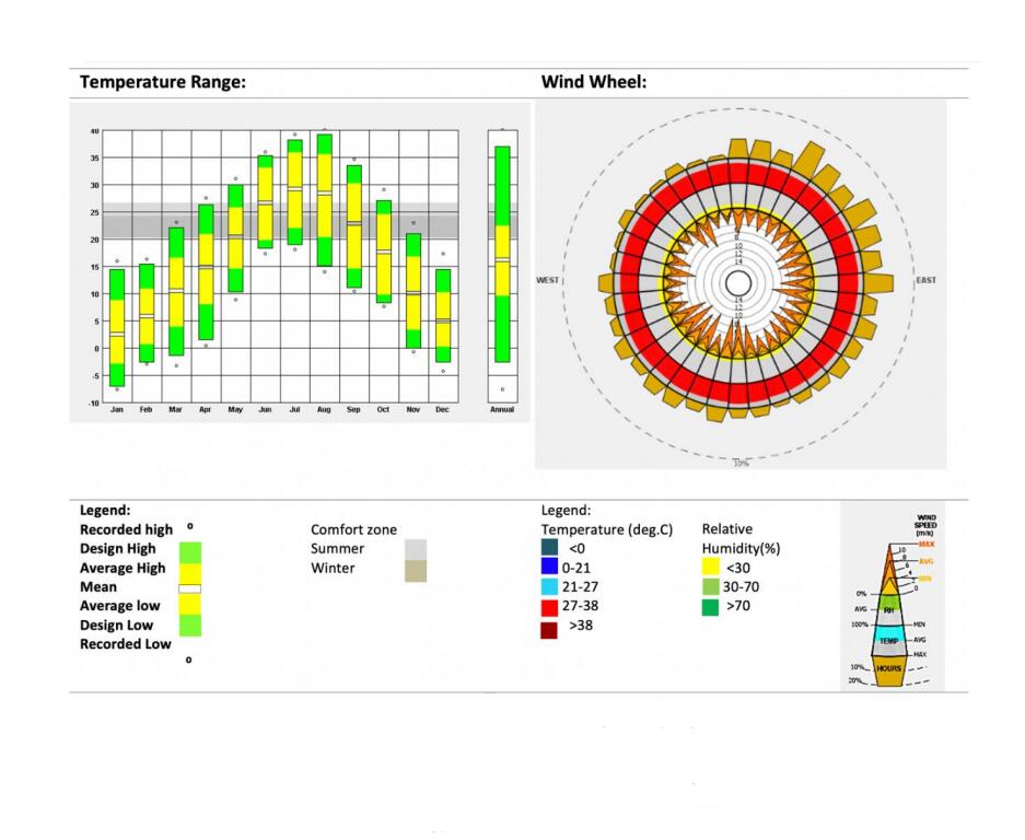 The climate studies for this paper were conducted using Climate Consultant, a graphic-based computer program that helps with the analysis and visualisation of the climate data acquired from the closest weather station.