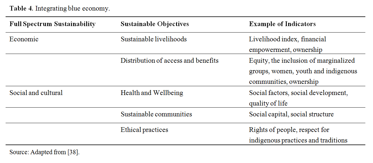 The Blue Economy cuts-across several industries, sectors, and thematic areas. This inherently creates complexity when attempting to understand the extent of its socio-economic context in aspiration of development achievement. The effect of human dependence on blue resources is not always monetary [14]. Some of the people use the resources for artisanal purposes, for exchange and trade, while others utilize the recreational and religious benefits associated with the blue natural resources. The well-being of people is a central pillar of the Blue Economy resulting in an immediate need to understand the socioeconomics of the Blue Economy as well as how to measure changes, or progress, associated with it for development. The planning aspect of Blue Economy requires strategic interventions that spur integration aspects of the Blue Economy into development.