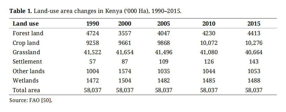 Table 1. Land-use area changes in Kenya (‘000 Ha), 1990–2015.