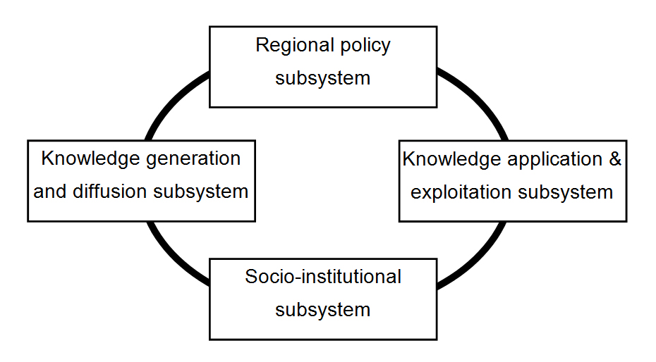 Innovation studies commonly address innovations as a system comprising two main constituents: components of some kind (i.e., actors) and their relations (i.e., interaction) [88]. The system also has a function, and it is possible to identify its boundaries. The regional innovation system framework (RIS) [89,90] extends the innovation system model to encompass spatial analysis by providing a framework for a regionally differentiated approach [39]. It emphasizes the importance of spatial proximity and favorable institutional settings for innovation activities [91]. The RIS framework also enables interregional analysis and higher spatial levels (national and international) [39].