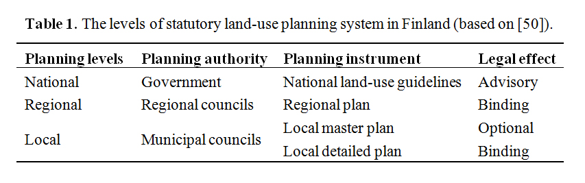 Table 1. The levels of statutory land-use planning system in Finland (based on [50]).