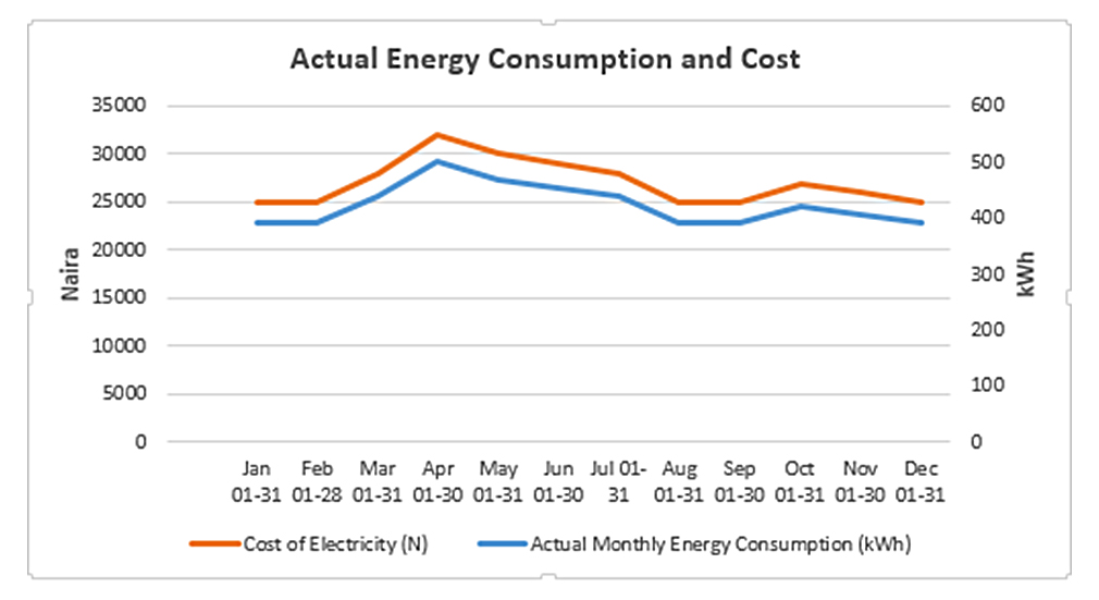 Result of the questionnaire surveyThe main content of the questionnaire and the results (responses) of the survey is shown in Table 3 while the actual monthly energy consumption of the building with the costs is shown in Figure 5.
