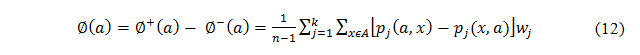 Where dj (a,b) is the difference between the evaluations of a and b on each criterion.
