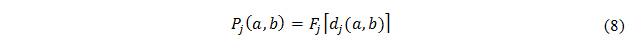 Where Pj (a,b) is the function of the difference between the evaluations of alternatives a regarding alternative b on each criterion into a degree ranging from 0 to 1.