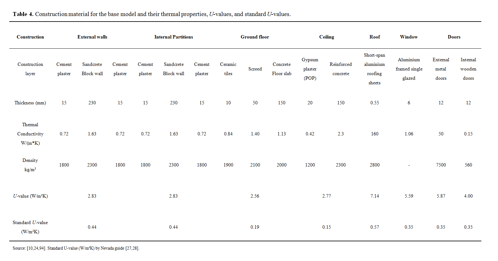 Given the above, the standard U-values recommended by Chinese and Nevada guides will be used for comparison in this study [17,27,28]. This is because they have a climate zone that is similar to the climate zone under study. The Table 1 below shows the recommended U-values for Chinese and Nevada Guides. These recommended U-values are essential towards improving the energy efficiency and indoor thermal comfort of the building occupants as they spend most of their time indoors.