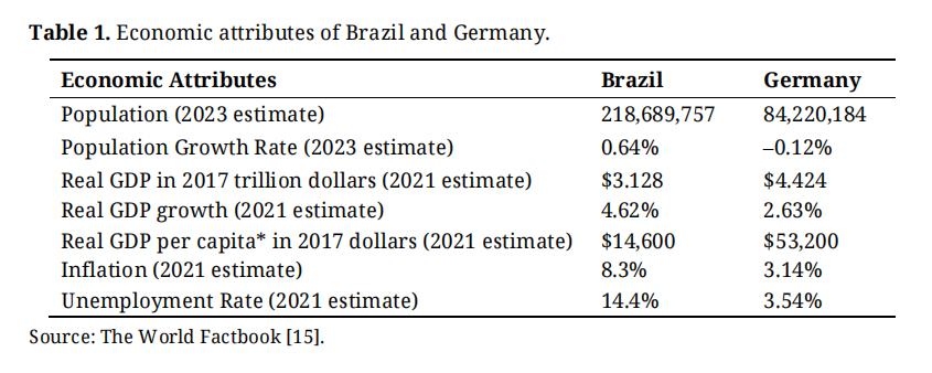 Table 1. Economic attributes of Brazil and Germany.