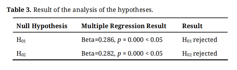 Table 3. Result of the analysis of the hypotheses.