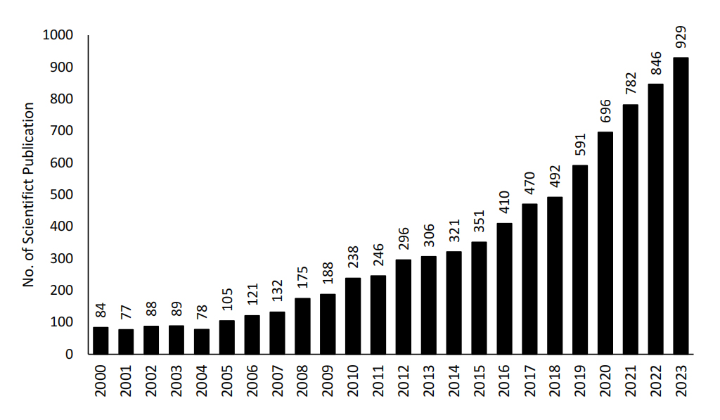 Distribution of Scientific Publications YearlyThe annual distribution of scientific publications is crucial for scholars to monitor the progression and advancement of scientific knowledge throughout time. Through investigation of publication distribution, scholars can discern building patterns, focal points, and changes in research emphases within a specific discipline.