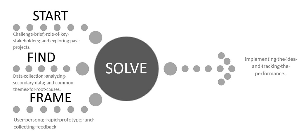 The four steps of design thinking outlined in this paper are used to gather input from key stakeholders and involve them in the problem-solving process. This framework was chosen for several reasons: it is applicable to social challenges as well as business-oriented projects, it is easy to follow, it aligns with popular stages of design thinking, it is suitable for addressing complex challenges like poverty, and it has the potential to result in innovative solutions.