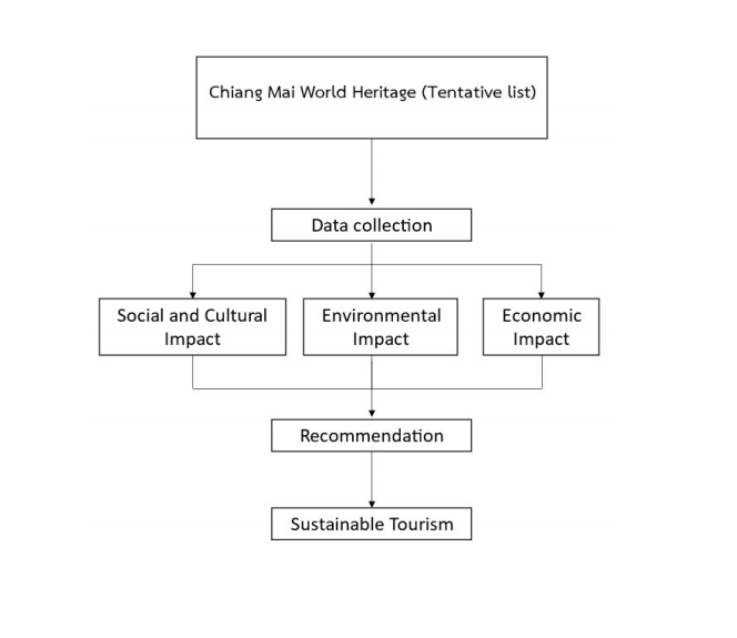 In this current research, the study of tourism sustainability was carried out by studying the three elements of impact assessment: the environmental, economic, social, and cultural impacts on historical and cultural tourism destinations in the Old Town district to determine how to encourage sustainable development of a world heritage site in Chiang Mai, including temples of significant historical value. An assessment of each tourism’s impact was conducted using the following tools.