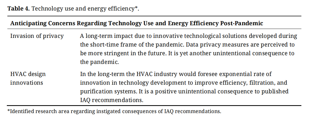 Notably, the instigated consequences of such recommendations vary in terms of both the severity of impact and intentionality., the pandemic, has left much room for academics and practitioners to reassess their take on managing and controlling indoor air. The key findings and expected future research directions from this review are as follows.