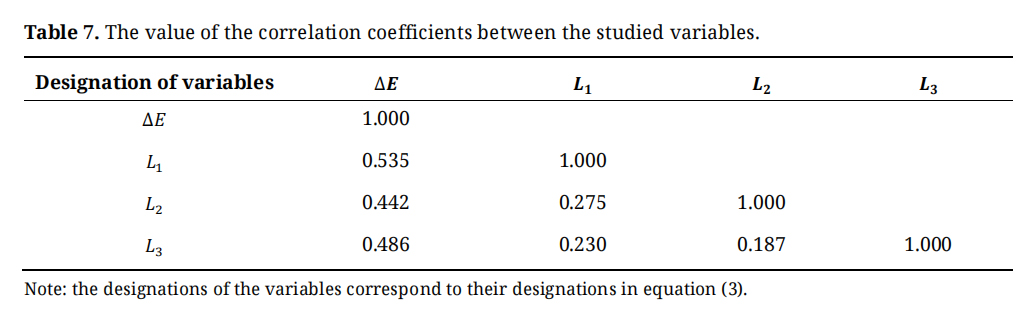 Stage 7. Construction of the correlation matrix for the studied variables, determination of the numerical values of the coefficients of the regression equation, and assessment of the statistical significance of the obtained dependence. At the same time, taking into account the selected variables, the specified equation will have the following general form: