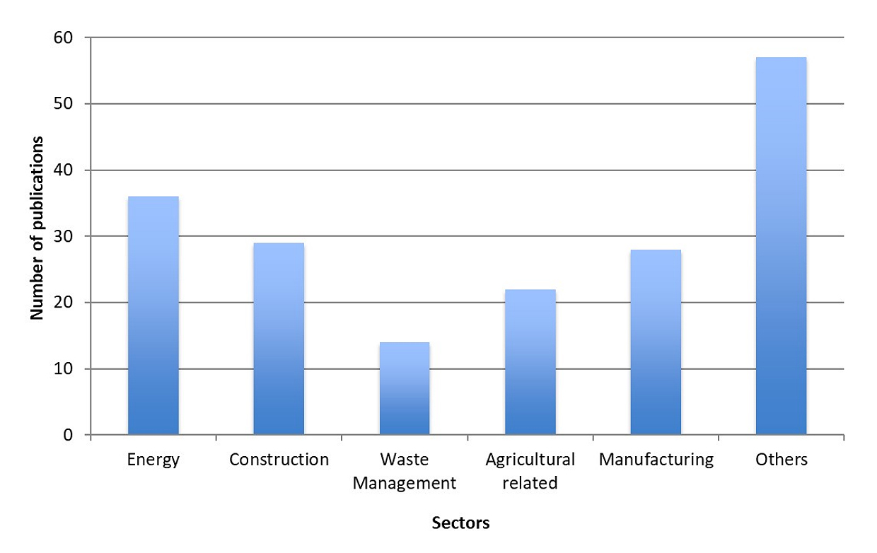 Current Status of the LCSA in Other SectorsPrevious literature review studies on the LCSA include significant industrial sectors such as energy [35,36], building and construction [37,38], waste management [39], manufacturing [40], and agriculture [41]. This study has categorised articles into these sectors, as illustrated in Figure 3. For clarity, the articles in the energy sector must cover topics like electricity, fuels, crude oil, batteries, and bioenergy. Meanwhile, manufacturing sector involves process design, and non-bio and bio-product manufacturing. The building and construction category pertains to residential and commercial buildings, while the waste management category contains articles on waste re-utilisation and management. However, 57 articles were uncategorised and subsequently referred to as ‘others’ (Figure 3). These articles largely covered LCSA framework development, fundamental analysis methods, as well as articles covering other sectors such as transport, urban and rural development, water supply systems, and non-bio product and bioproduct value chains.