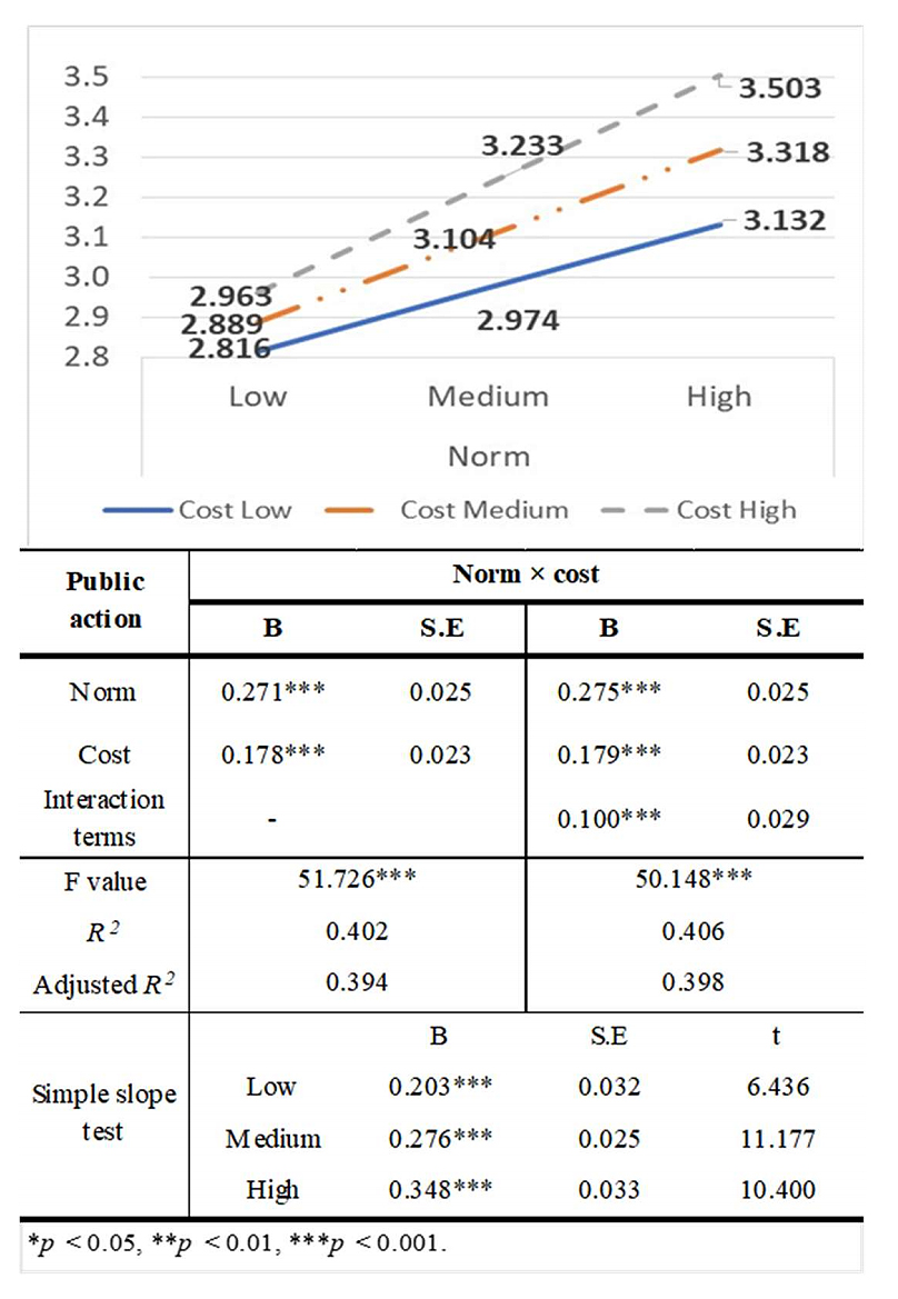 Figure 8. Results of the analysis of the interaction effect of cost on the relationship between public action and norm.