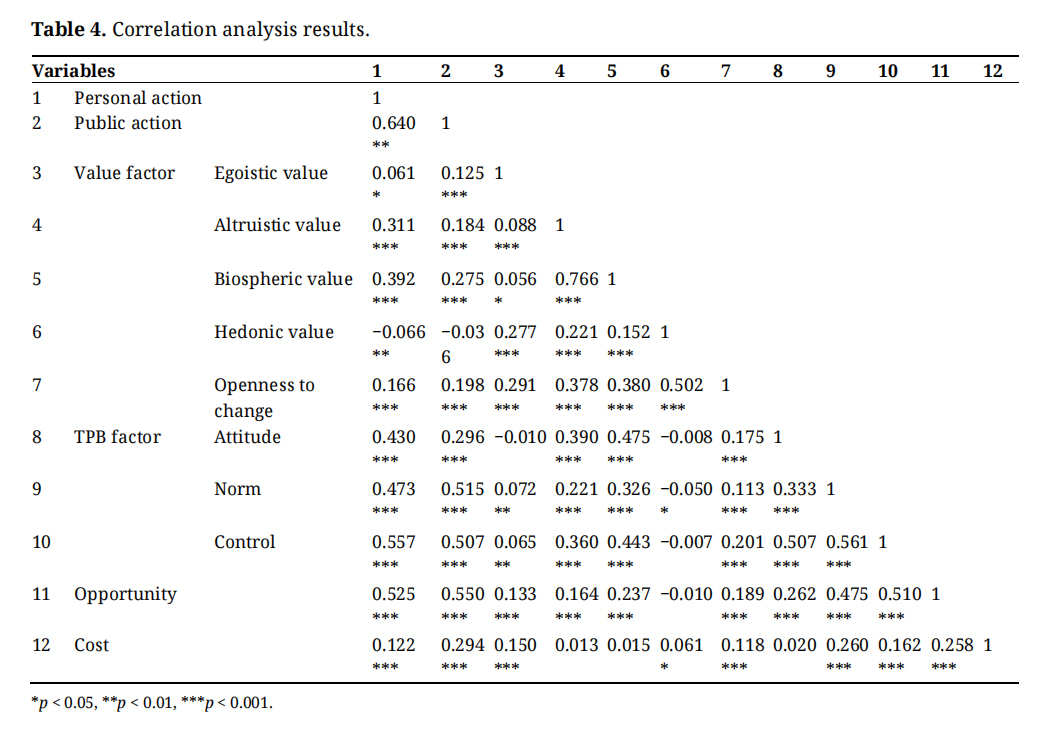 Table 4. Correlation analysis results.