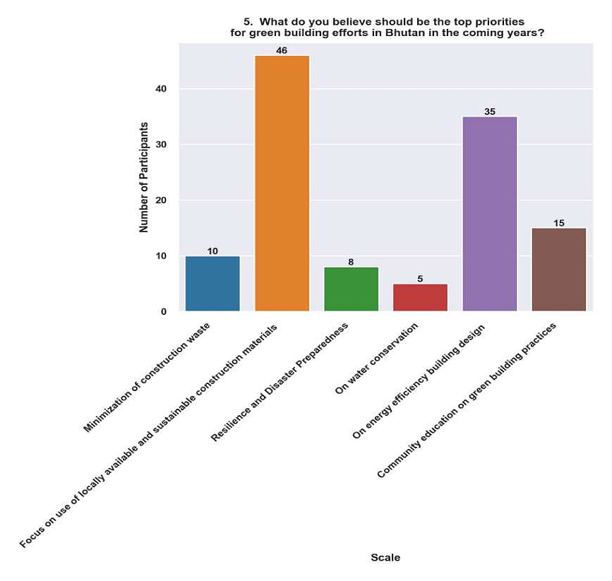 This response is positive, but it also presents a chance for the government to expand its initiatives and fortify its green construction policy frameworks. Raising the bar for environmental performance in the construction industry could entail implementing new legislation or standards, growing incentives, and raising funding for sustainability projects. By leveraging the momentum of current support, the government may encourage further investment, innovation, and cooperation in green building methods, eventually furthering Bhutan’s objectives for sustainable development.